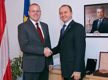 Београд/Беч, 28. октобар 2013. године – Државни секретар Министарства унутрашњих послова Владе Републике Србије Вања Вукић разговарао је данас у Бечу са генералним директором Јавне безбедности Савезног министарства унутрашњих послова Аустрије Конрадом Коглером.