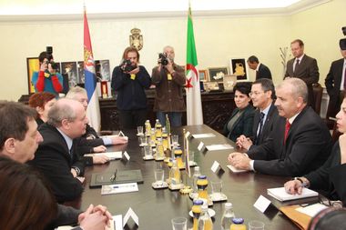 Београд, 6. новембар 2013. године – Министар спољних послова у Влади Републике Србије Иван Мркић и министар за водне ресурсе и копредседавајући 20. заседања Мешовитог комитета за економску и научно-техничку сарадњу Србије и Алжира Хосун Несиб данас су у разговору потврдили традиционално добре билатералне односе две државе и разговарали о могућностима развоја економске сарадње.