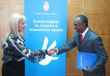 Београд, 12. децембар 2013. године – Директор Канцеларије за људска и мањинска права Владе Републике Србије Сузана Пауновић и директор Канцеларије УНИЦЕФ-а за Србију Мишел Сен Ло разговарали су данас о плановима за заједничке активности у области заштите људских и мањинских права.