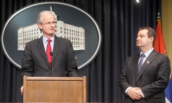 | Кристијан Данијелсон и Ивица Дачић на данашњој конференцији за новинаре |