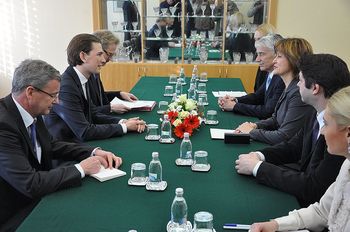 Београд, 26. фебруар 2014. године – Директор Канцеларије за дијаспору и Србе у региону Владе Републике Србије Славка Драшковић разговарала је данас са савезним министром иностраних послова Републике Аустрије Себастијаном Курцом, који борави у службеној посети Србији.