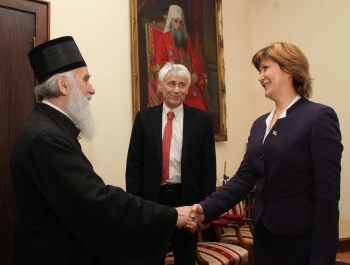 Београд, 4. март 2014. године – Директор Канцеларије за сарадњу с дијаспором и Србима у региону Владе Републике Србије Славка Драшковић разговарала је данас са патријархом српским Иринејом о положају српског народа у региону, с посебним освртом на положај Срба у Македонији.