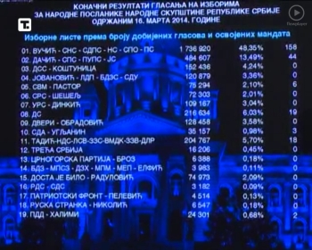 Београд, 25. март 2014. године – Републичка изборна комисија прогласила је синоћ коначне резултате ванредних парламентарних избора одржаних 16. марта, према којима коалиција око СНС има 158 посланичких места, а коалиција СПС-ПУПС-ЈС 44.