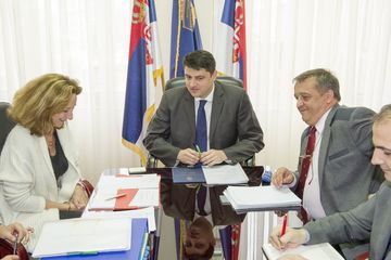 Београд, 9. април 2014. године – Државни секретар Министарства унутрашњих послова Владимир Божовић, који је задужен за координацију послова унутрашње контроле и међународне сарадње, и помоћник министра и начелник Сектора унутрашње контроле полиције Милош Опарница састали су се данас са шефом Одељења за Србију у Европској комисији (ЕК) Мириам Феран и њеним сарадницима.