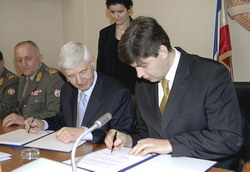 Београд, 23. фебруар 2005. године - Министар унутрашњих послова у Влади Републике Србије Драган Јочић и министар одбране Србије и Црне Горе Првослав Давинић потписали су данас у Београду споразум којим се чување државне границе поверава полицијским снагама.
