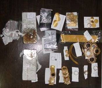 Београд, 11. мај 2014. године – Министарство унутрашњих послова Владе Републике Србије саопштило је данас да су полицијски службеници Регионалног центра према Македонији на граничном прелазу Прешево запленили 3,48 килограма накита и полуга од жутог и белог метала налик злату.