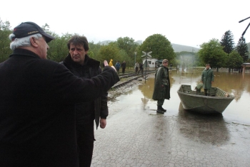 Лучани, 15. мај 2014. године – Министар одбране у Влади Републике Србије Братислав Гашић обишао је данас подручја захваћена поплавама у којима су ангажовани припадници Војске Србије.