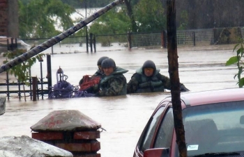 | Припадници Војске Србије ангажовани на пружању помоћи и евакуацији становништва угроженог поплавама |