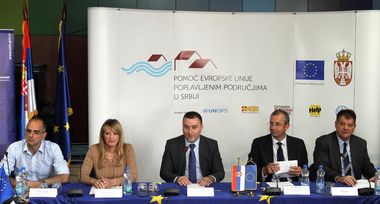 Обреновац, 25. јул 2014. године – Министар без портфеља у Влади Републике Србије задужен за европске интеграције Јадранка Јоксимовић и шеф Делегације ЕУ у Србији Мајкл Девенпорт потписали су данас Споразум о одобравању средстава из претприступних ИПА фондова у износу од 30 милиона евра за санирање последица поплава у 24 општине.