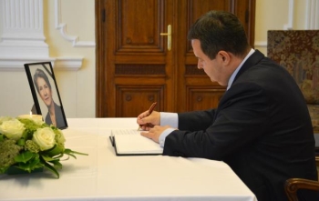 Београд, 7. август 2014. године – Први потпредседник Владе Републике Србије и министар спољних послова Ивица Дачић уписао се данас у књигу жалости која је отворена у Амбасади Аустрије у Београду поводом смрти председника аустријског парламента Барбаре Прамер.