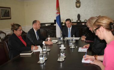 Београд, 12. септембар 2014. године – Први потпредседник Владе Републике Србије и министар спољних послова Ивица Дачић разговарао је данас са представником генералног секретара и шефом Канцеларије Уједињених нација у Београду (УНОБ) Питером Дуеом о сарадњи Србије са УН у имплементацији Резолуције 1244 Савета безбедности УН.