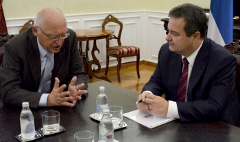 Дачић је током састанка са бившим комесаром Европске уније за проширење Гинтером Ферхојгеном изразио наду да ће он својим искуством помоћи Србији на путу ка ЕУ.