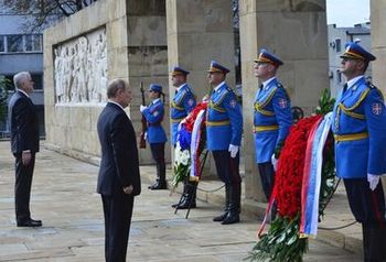 Након слетања, председници двеју земаља учествовали су на церемонији полагања венаца на гробљу Ослободилаца Београда, након чега је руском председнику приређен
