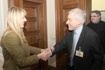 Београд, 28. октобар 2014. године – Министар без портфеља у Влади Републике Србије задужен за европске интеграције Јадранка Јоксимовић разговарала је данас са директором Европског универзитетског центра из Нансија у Француској професором Етијеном Крикијем и професором Правног факултета у Београду Бранком Ракићем.