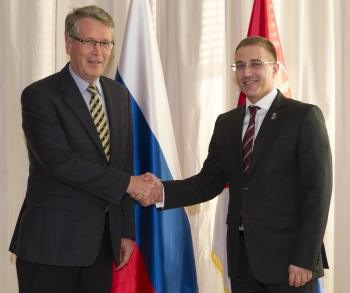 Београд, 10. новембар 2014. године – Министар унутрашњих послова у Влади Републике Србије Небојша Стефановић разговарао је данас са амбасадором Руске Федерације у Београду Александром Чепурином о унапређењу сарадње између две државе у области унутрашњих послова.