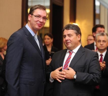 Београд, 17. новембар 2014. године – Председник Владе Републике Србије Александар Вучић изјавио је синоћ на пријему поводом доласка вицеканцелара и савезног министра за економске послове и енергетику СР Немачке Сигмара Габријела да је стратешки и политички циљ Србије да постане део Европске уније.