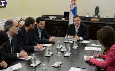 Београд, 6. децембар 2014. године – Први потпредседник Владе Републике Србије и министар спољних послова Ивица Дачић и лидер највеће опозиционе партије Републике Грчке Алексис Ципрас оценили су у данашњем разговору да су билатерални односи двеју земаља традиционално пријатељски.