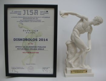 Београд, 12. децембар 2014. године – Управа за заједничке послове републичких органа (УЗЗПРО) добитник је главне награде "Дискоболос" за 2014. годину из области Пројектовање за Help Desk System, односно сервис за сервисно-техничку подршку органа државне управе.
