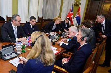 Београд, 15. јануар 2015. године – Министар привреде у Влади Републике Србије Жељко Сертић разговарао је данас са министром спољних послова Велике Британије Филипом Хамондом о европском путу Србије и унапређењу пословног амбијента у земљи.