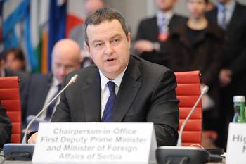 Београд/Беч, 12. фебруар 2015. године – Први потпредседник Владе Републике Србије и министар спољних послова Ивица Дачић, који је и председавајући ОЕБС-у, поздравио је данас резултате самита у Минску и дао пуну подршку пакету мера за примену споразума из Минска из септембра 2014. године, који је договорила Трилатерална контакт група.