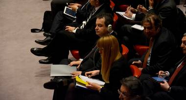 Београд/Њујорк, 23. фебруар 2015. године – Први потпредседник Владе Републике Србије и министар спољних послова Ивица Дачић поручио је данас на отвореној дебати СБ УН посвећеној одржавању мира и безбедности у свету да се Србија снажно залаже за јачање улоге Уједињених нација на том плану, као и за поштовање међународног права.