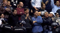 Републички министар културе и спорта Слободан Вуксановић заједно са навијачима у београдској хали "Пионир" прати утакмицу између Партизана и Цибоне |
