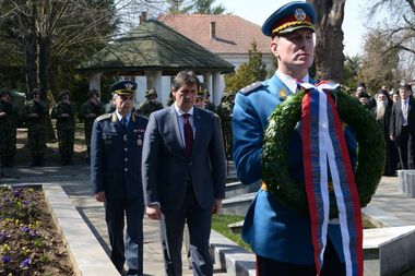 Крушевац, 24. март 2015. године – Министар одбране у Влади Републике Србије Братислав Гашић положио је данас венац на Споменик браниоцима отаџбине 1998-1999. године у крушевачкој касарни Расина.