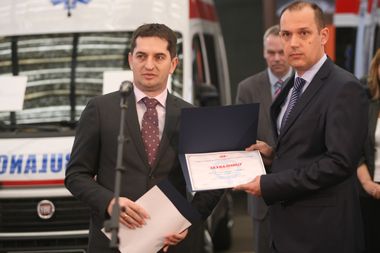 Београд, 27. март 2015. године – Министар здравља у Влади Републике Србије Златибор Лончар уручио је данас кључеве 34 специјализована возила за службе хитне медицинске помоћи представницима 24 дома здравља и Градском заводу за хитну медицинску помоћ Града Београда.