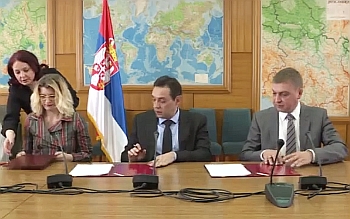 Београд, 15. април 2015. године – Министар за рад, запошљавање, борачка и социјална питања у Влади Републике Србије Александар Вулин и генерални секретар Удружења осигуравача Србије Владан Манић потписали су данас уговоре о стипендирању десет талентованих ученика и студената са инвалидитетом.