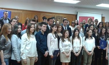 Крагујевац, 4. мај 2015. године – Министар омладине и спорта у Влади Републике Србије и председник Фонда за младе таленте Вања Удовичић уручио је данас уговоре стипендистима овог фонда са Универзитета у Крагујевцу и позвао их да не напуштају своју земљу.