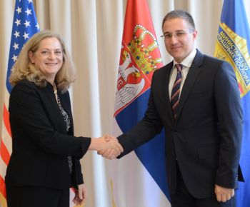 Београд, 23. јун 2015. године – Министар унутрашњих послова у Влади Републике Србије Небојша Стефановић разговарао је данас са координатором за помоћ САД за Европу и Евроазију Бироа за европске и евроазијске послове Стејт департмента Алином Романовски о унутрашњим реформама које спроводи то министарство, са посебним освртом на нови закон о полицији.