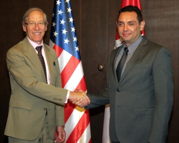 Београд, 17. август 2015. године – Министар за рад, запошљавање, борачка и социјална питања у Влади Републике Србије Александар Вулин разговарао је данас са амбасадором Сједињених Америчких Држава (САД) у Србији Мајклом Кирбијем о проблему миграната у Србији.