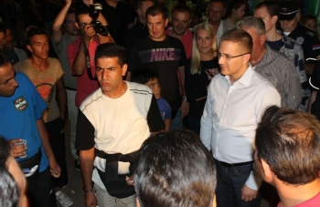 Београд, 25. август 2015. године – Министар унутрашњих послова у Влади Републике Србије Небојша Стефановић обишао је синоћ импровизовани камп миграната у парку код аутобуске станице у Београду, и том приликом поновио да ће се полиција постарати за то да се они осећају безбедно у нашој земљи.
