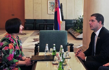 Београд, 15. септембар 2015. године – Директор Канцеларије за Косово и Метохију Владе Републике Србије Марко Ђурић разговарао је данас са представником генералног секретара Уједињених нација и шефом Канцеларије УН у Београду Симоном Мирелом Микулеску.