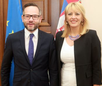 Београд, 21. септембар 2015. године – Министар без портфеља у Влади Републике Србије задужен за европске интеграције Јадранка Јоксимовић разговарала је данас са државним министром за Европу у Министарству спољних послова Немачке Михаелом Ротом о процесу приступања Србије ЕУ.