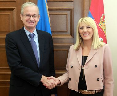 Београд, 1. октобар 2015. године – Министар без портфеља у Влади Републике Србије задужен за европске интеграције Јадранка Јоксимовић разговарала је данас са генералним директором Генералног директората Европске комисије за суседску политику и проширење Кристијаном Данијелсоном о тренутном стању у процесу европских интеграција Србије.