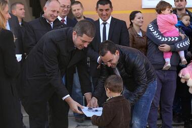 Косовска Митровица, 3. новембар 2015. године – Директор Канцеларије за Косово и Метохију Владе Републике Србије Марко Ђурић уручио је данас кључеве и решења о усељењу станарима две зграде изграђене средствима Владе Србије, а које се налазе у насељу Бошњачка Махала, у Косовској Митровици.