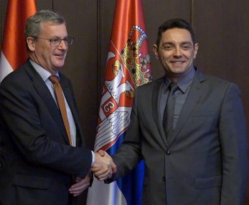 Београд, 10. новембар 2015. године – Министар за рад, запошљавање, борачка и социјална питања у Влади Републике Србије Александар Вулин разговарао је данас са амбасадором Републике Аустрије у Србији Јоханесом Ајгнером о актуелној мигрантској кризи и изазовима са којима се Србија и земље региона суочавају због све већег прилива миграната.