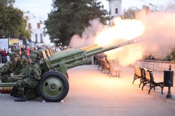 Београд, 10. новембар 2015. године – У част државног празника – Дана примирја у Првом светском рату данас је извршена почасна артиљеријска паљба са Савске терасе Београдске тврђаве.