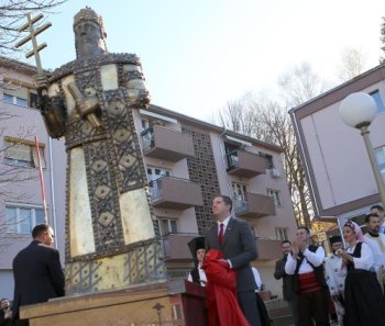 Ђурић је данас у центру Звечана открио и споменик краљу Милутину |