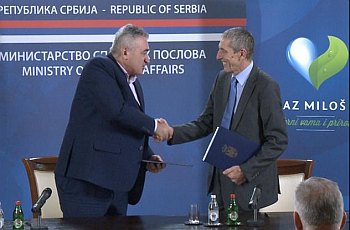 Београд, 25. новембар 2015. године – Вршилац дужности генералног секретара Министарства спољних послова Владе Републике Србије Вељко Одаловић и извршни директор компаније "Књаз Милош" Милош Стојисављевић потписали су данас уговор о донацији те компаније поводом 22. министарског савета ОЕБС-а, који ће бити одржан 3. и 4. децембра у Београду.