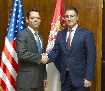 Београд, 1. децембар 2015. године – Министар унутрашњих послова у Влади Републике Србије Небојша Стефановић разговарао је данас са замеником помоћника државног секретара из Бироа за демократију, људска права и рад у Стејт департменту Робертом Бершчинским о унапређењу стања људских права у Србији, актуелној мигрантској кризи и заједничкој борби против тероризма.