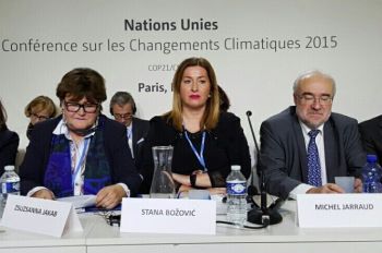 Београд/Париз, 11. децембар 2015. године – Државни секретар Министарства пољопривреде и заштите животне средине Владе Републике Србије Стана Божовић учествује на светској конференцији УН о промени климе у Паризу, на којој ће бити донет нови климатски споразум којим се дефинишу национални доприноси у погледу смањења гасова са ефектом стаклене баште.