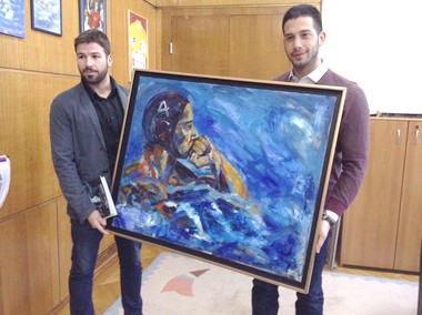 Међу његовим делима нашао се и портрет министра омладине и спорта Вање Удовичића, који је млади сликар насликао док је Удовичић био капитен репрезентације, а данас му га је и лично поклонио.
