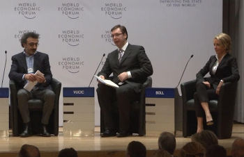 Београд/Давос, 20. јануар 2016. године – Председник Владе Републике Србије Александар Вучић изјавио је вечерас на Светском економском форуму у Давосу да је Србија само транзитна земља на мигрантској рути ка Европи, док су њихове коначне дестинације Немачка, Аустрија и скандинавске земље.