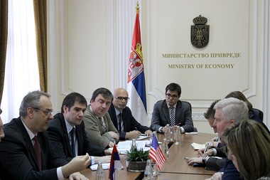 Београд, 2. март 2016. године – Министар привреде у Влади Републике Србије Жељко Сертић разговарао је данас са амбасадором Сједињених Америчких Држава (САД) у Србији Кајлом Скотом о даљем развоју привредних односа двеју земаља, пројекту "
