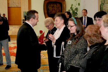 Дачић је уз честитке поводом Међународног дана жена – 8. марта, свим присутним женама поклонио по црвену ружу.