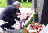 | Зоран Стојковић полаже венац у име Владе Србије у комплексу логора "Старо сајмиште" |