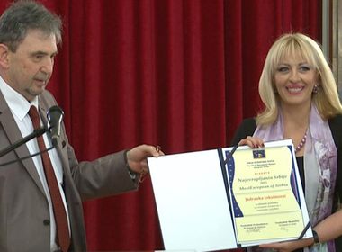 Београд, 18. април 2016. године – Министру без портфеља у Влади Републике Србије задуженом за европске интеграције Јадранки Јоксимовић вечерас је уручена награда “Најевропљанин” за 2015. годину у области политике, коју додељује Прва европска кућа.