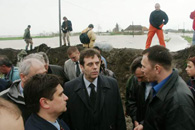 Председник Владе Војислав Коштуница у обиласку насипа код Међе |